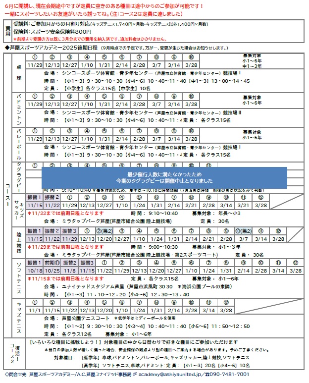 →お手続きはこちらから【キャンセル/種目変更受付】芦屋スポーツアカデミー2025